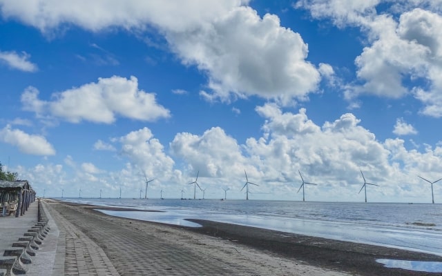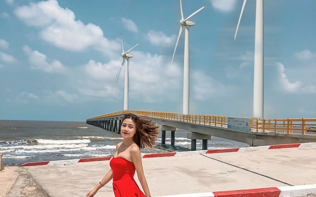 Điện gió Duyên Hải là một trong những nhà máy điện gió lớn nhất Việt Nam, đang thu hút ngày càng nhiều du khách khi đến với tỉnh Trà Vinh. Nằm trải dài bên bờ biển, khu vực điện gió Duyên Hải được điểm xuyến bởi hàng trăm cột tua-bin gió khổng lồ, tạo nên khung cảnh hùng vĩ. Khi đến đây, du khách sẽ có cơ hội chiêm ngưỡng và check in tại những cánh quạt gió khổng lồ quay đều đặn trong gió biển.